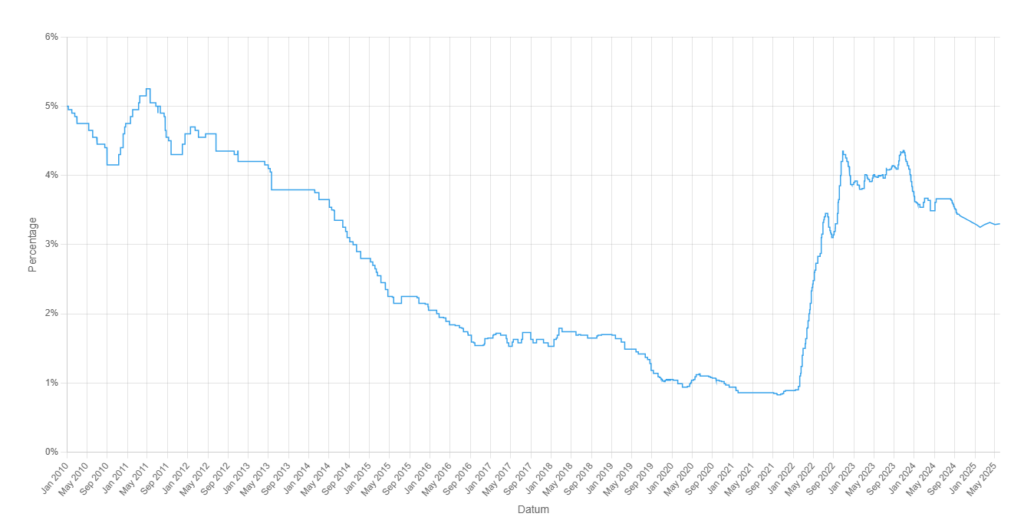 Allereerst kijken banken naar drie indicatoren die de kosten van geld voor hen weerspiegelen. Deze worden sterk beïnvloed door macro-economische omstandigheden, zoals het rentebeleid van de Europese Centrale Bank (ECB) , vooral van invloed op kortlopende rentes, en de algemene economische situatie. In periodes van een sterke economie zien we vaak lagere rentestanden.
